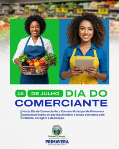 Neste Dia do Comerciante, a Câmara Municipal de Primavera parabeniza todos os que movimentam a nossa economia com trabalho, coragem e dedicação.